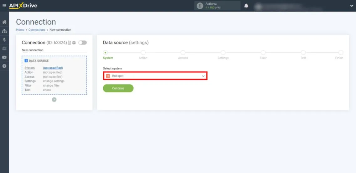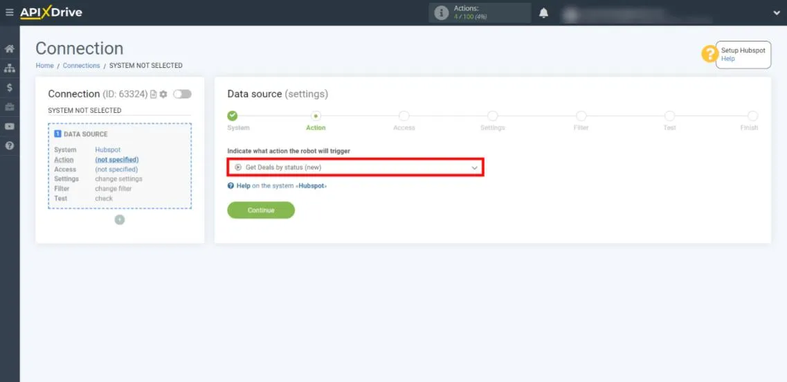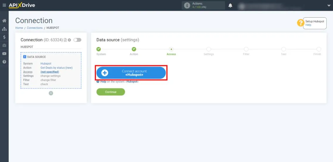 Comencemos a conectar Hubspot: haga clic en el botón azul.