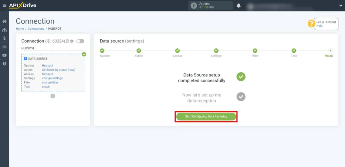 Haga clic en "Comenzar a configurar la recepción de datos".