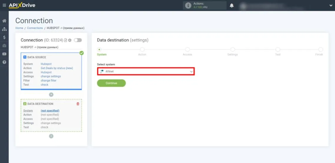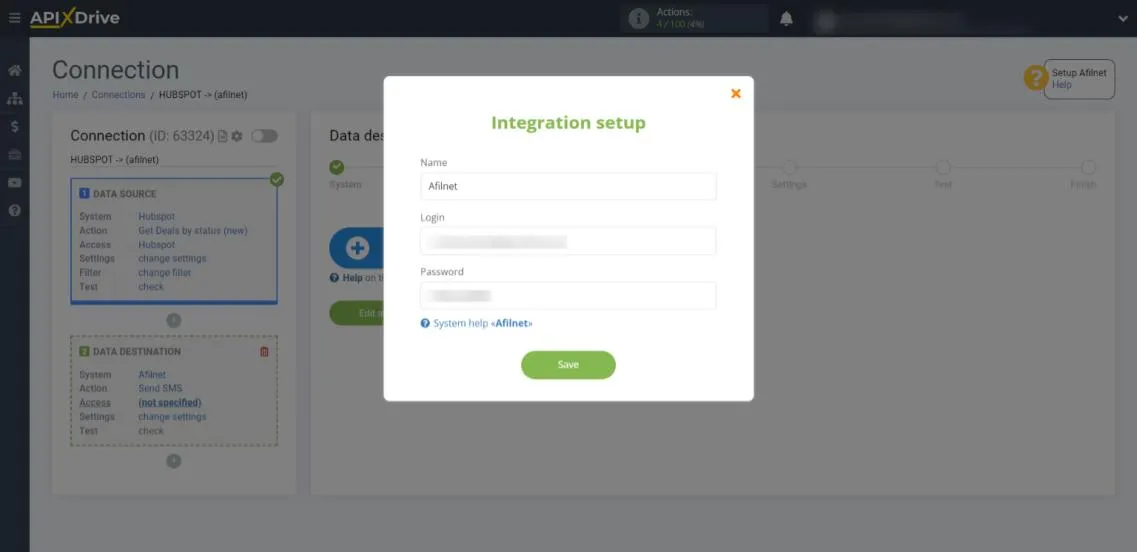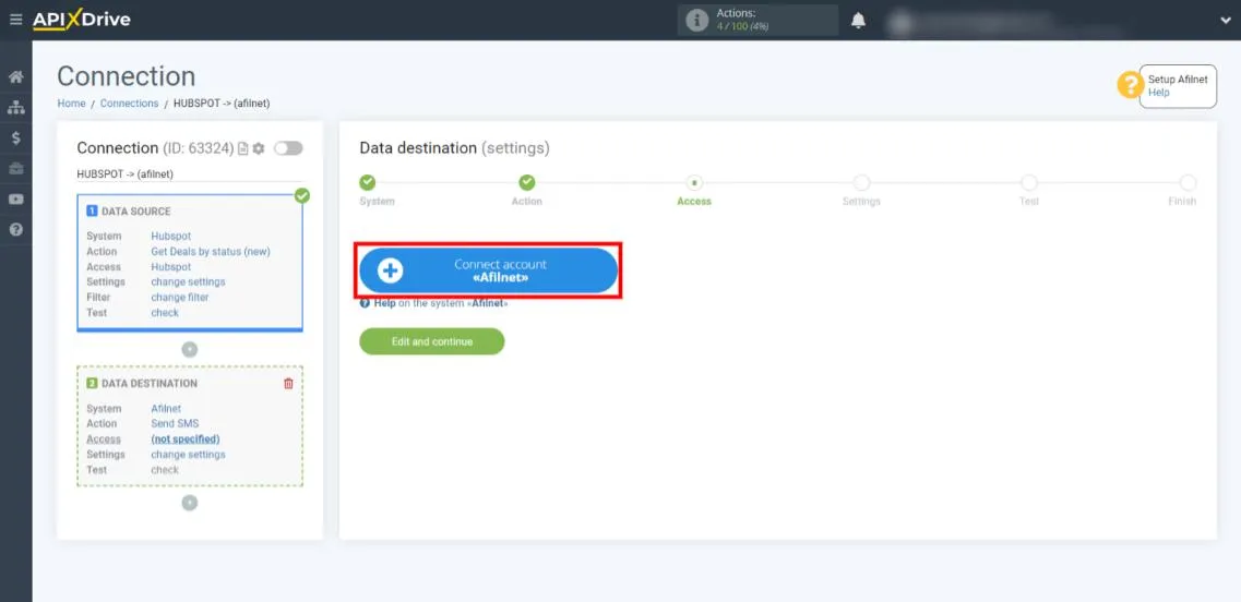 Para configurar, debe conectar el servicio requerido a Afilnet y seleccionar un evento en él que activará el envío del mensaje. La configuración se realiza en el sitio web de ApiX-Drive y, en promedio, demora hasta 15 minutos. No se requieren conocimientos técnicos para esto: el usuario cuenta con la ayuda de las sugerencias integradas en la interfaz.