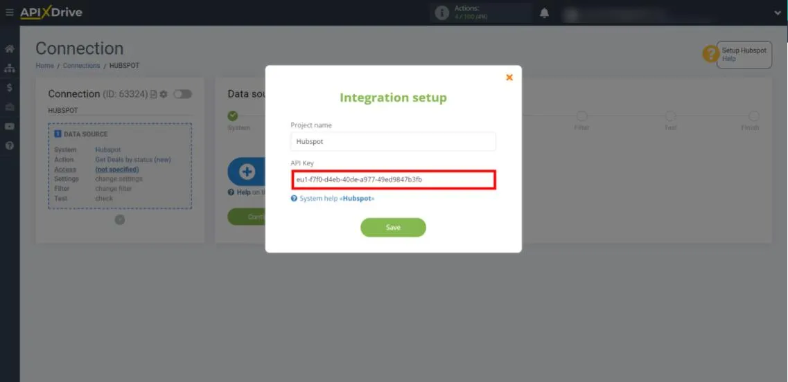 Vuelva a configurar ApiX-Drive e ingrese la clave que acaba de copiar.